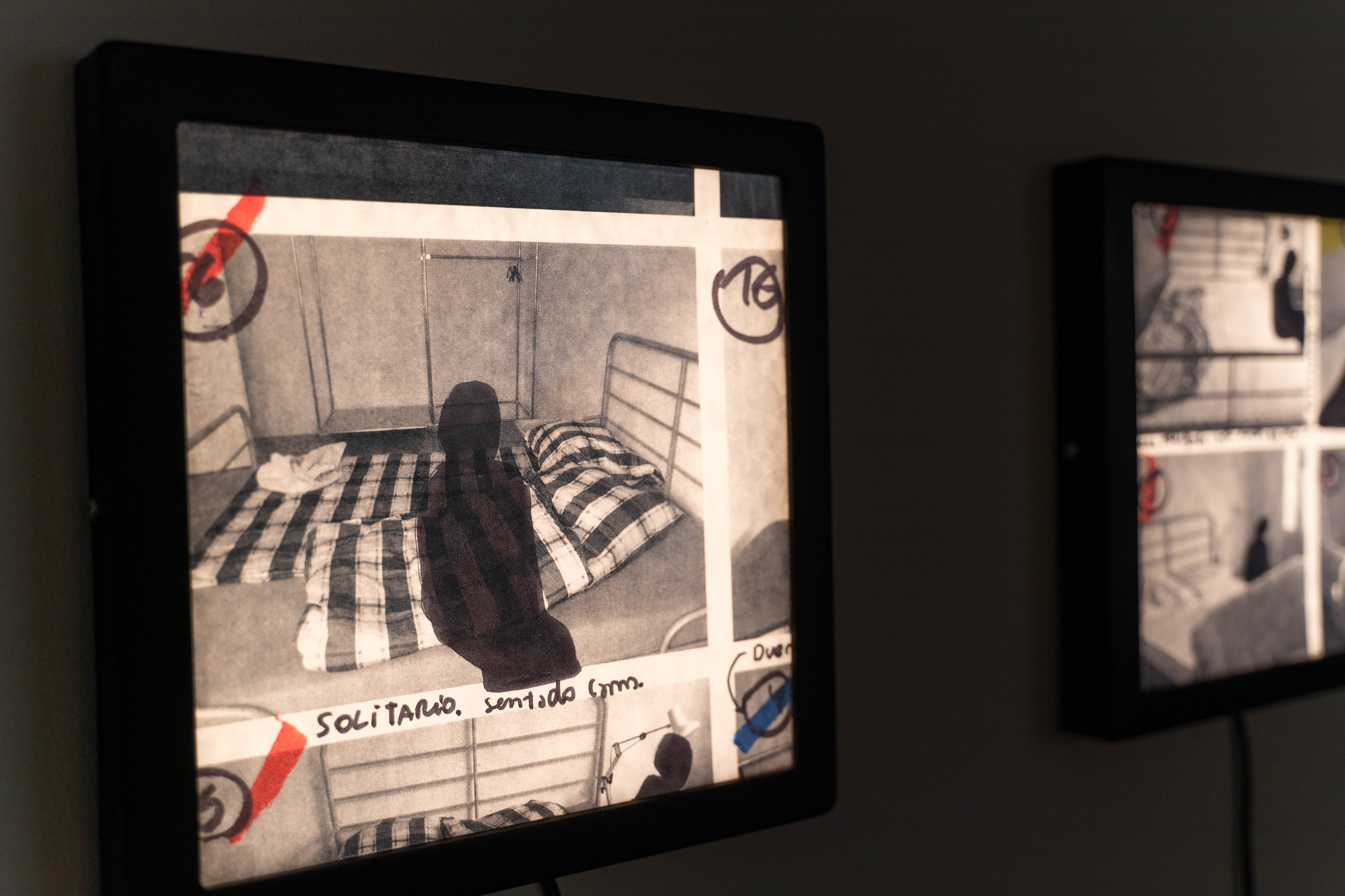After compiling a large number of documentary material, Ábalos drew human figures on the photographs, representing the moments she imagined occurred inside the rooms. Then, with the help of her friends, she recreated and filmed these moments in the same apartments.
