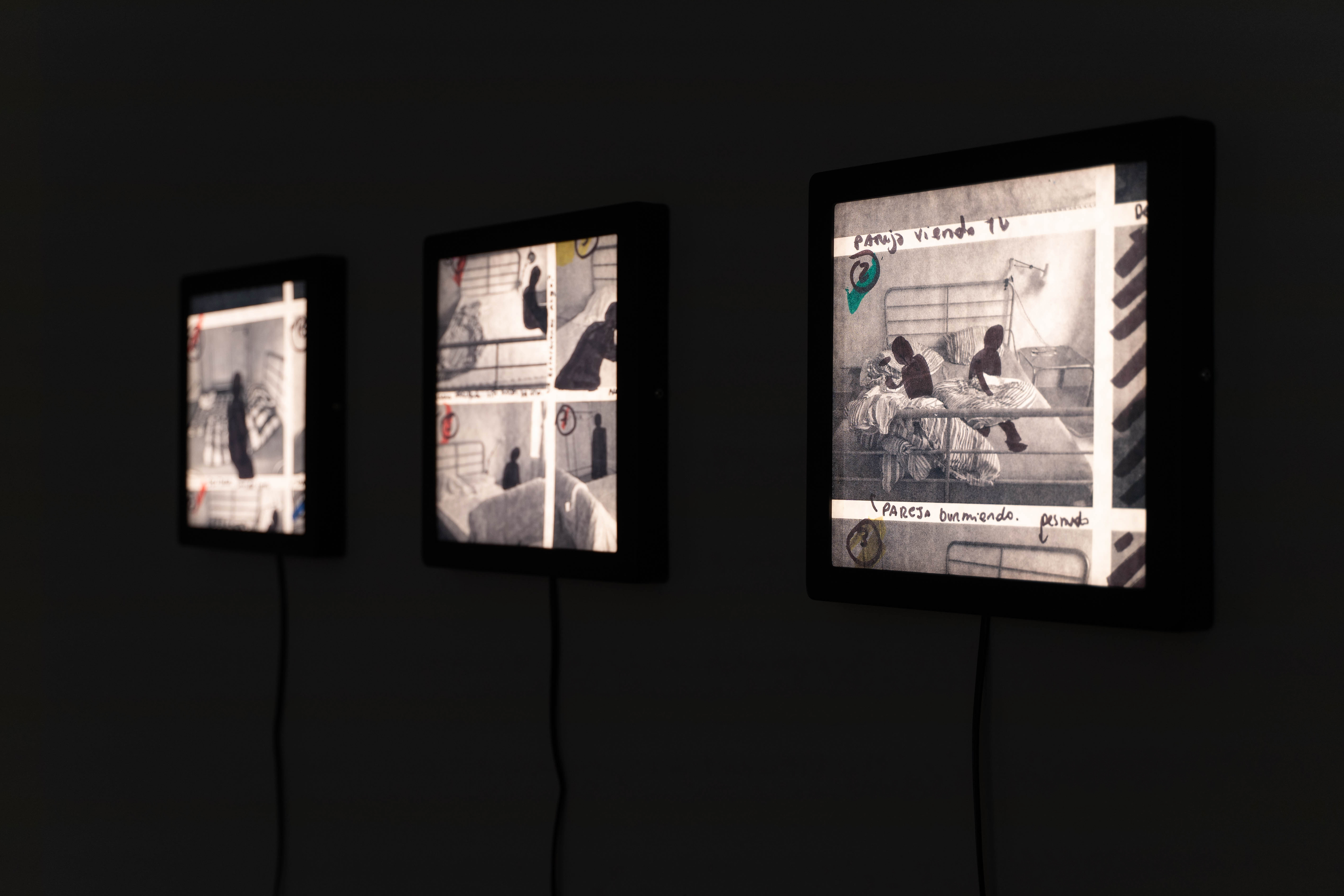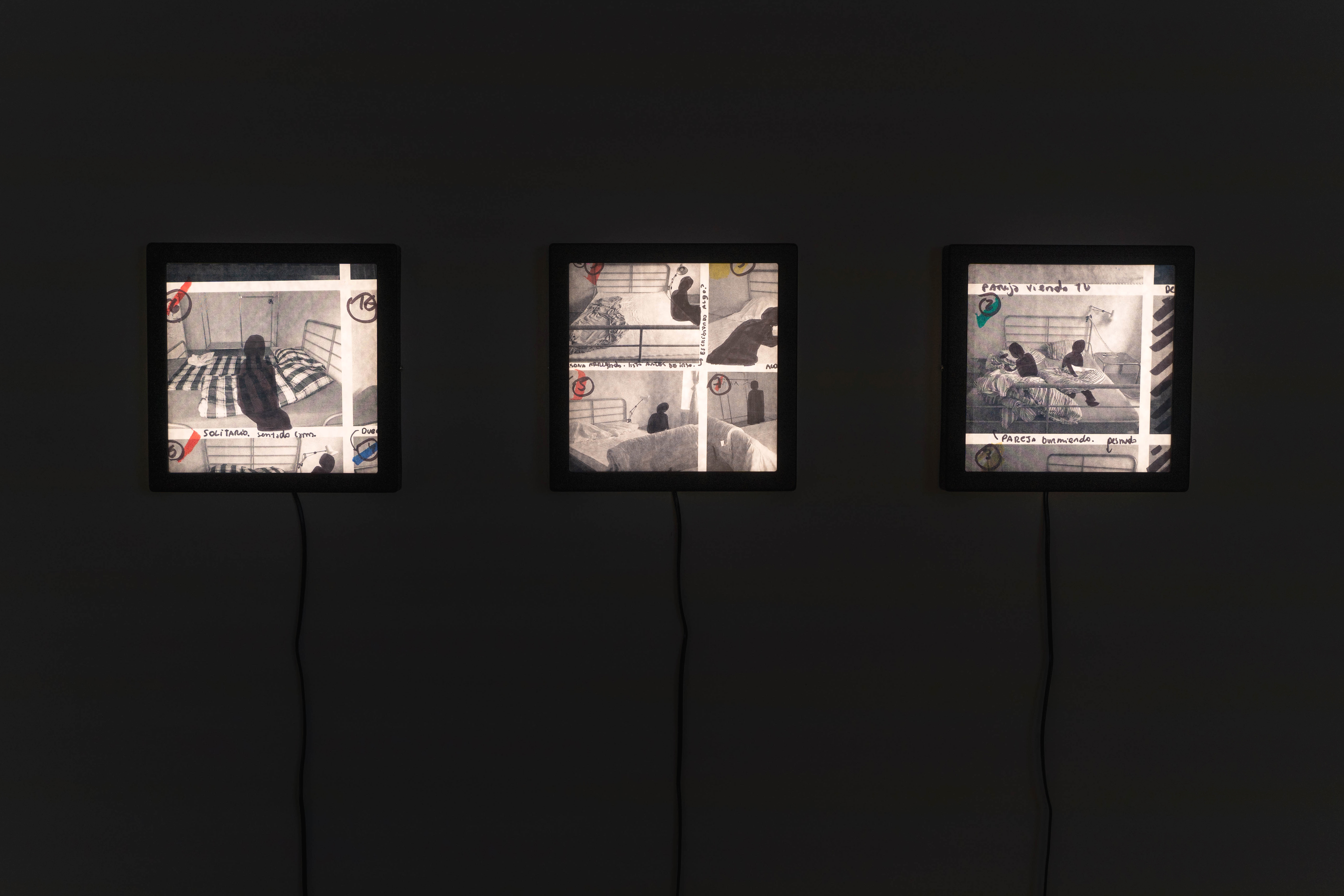 This project consists on a a book, a video installation of 3 channels, drawings, photographs, light boxes, and an animation.